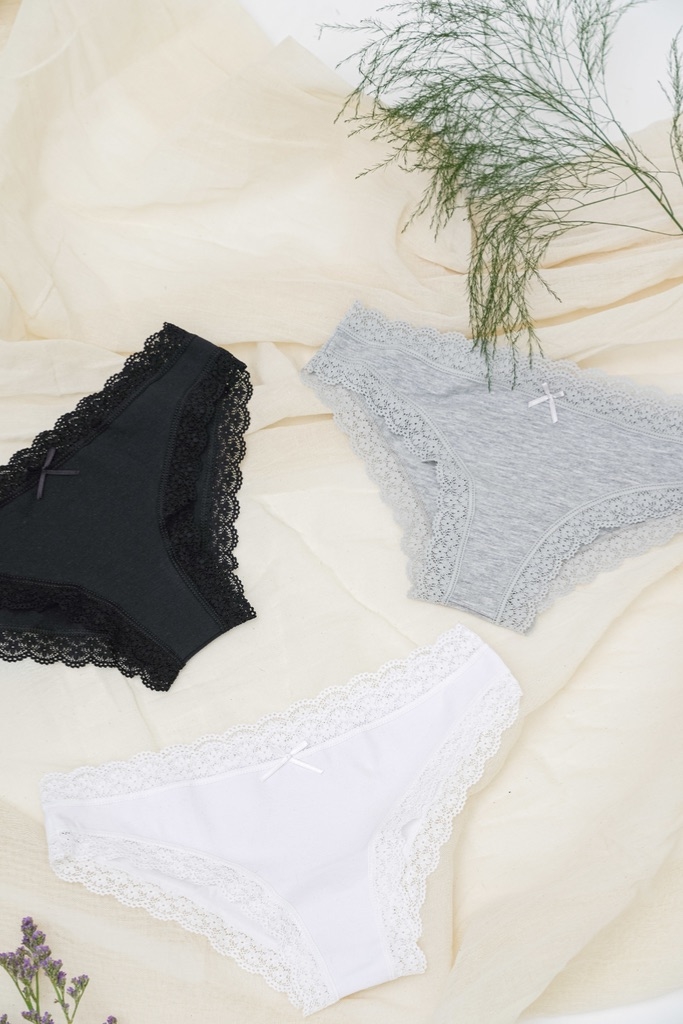 Pack x 3 bombachas vedetinas de algodón y puntilla. De calce muy cómodo.